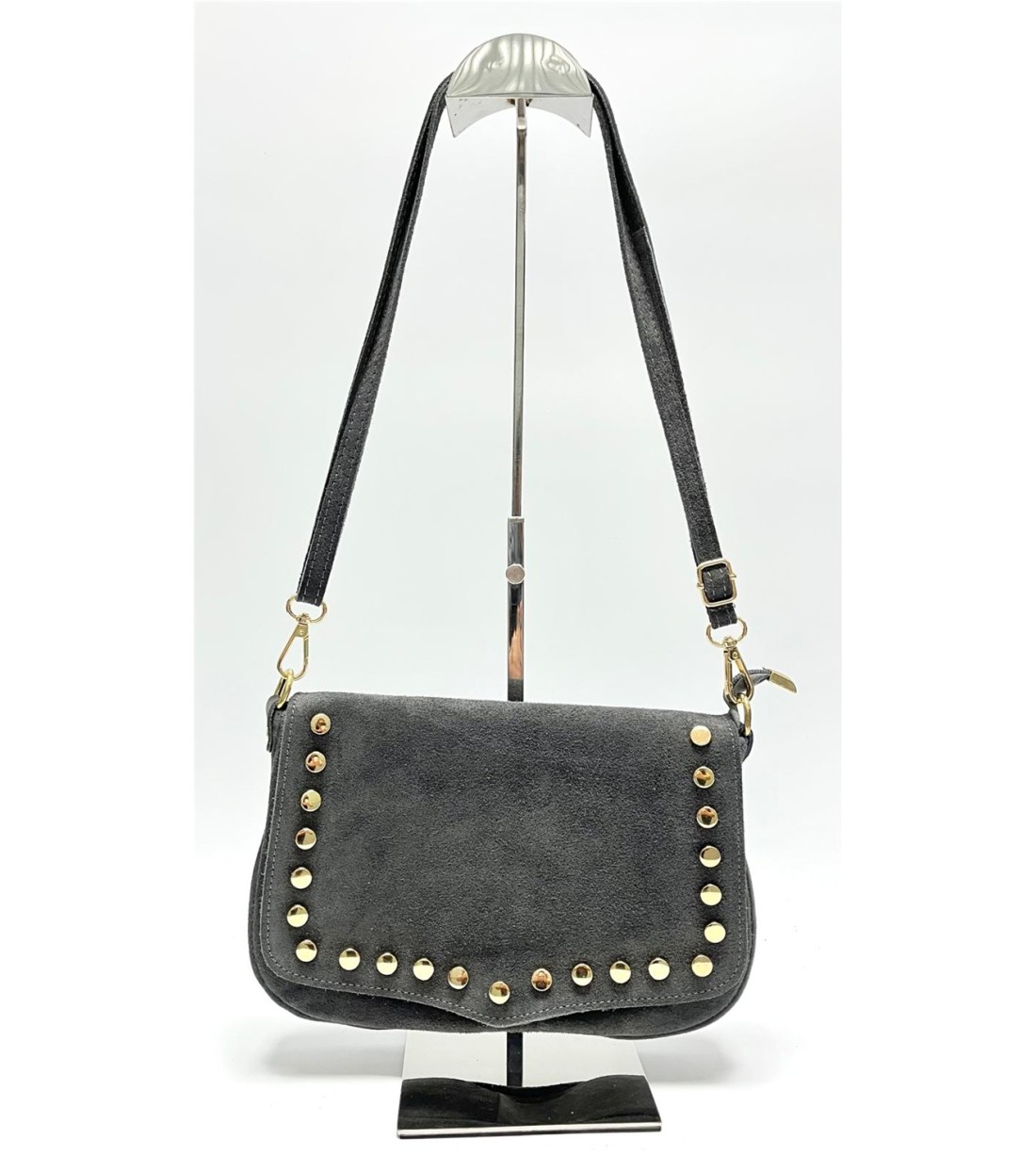 Bolso de mujer pequelo de piel con tachuelas. Ancho 26cm. Largo 15cm (aprox)