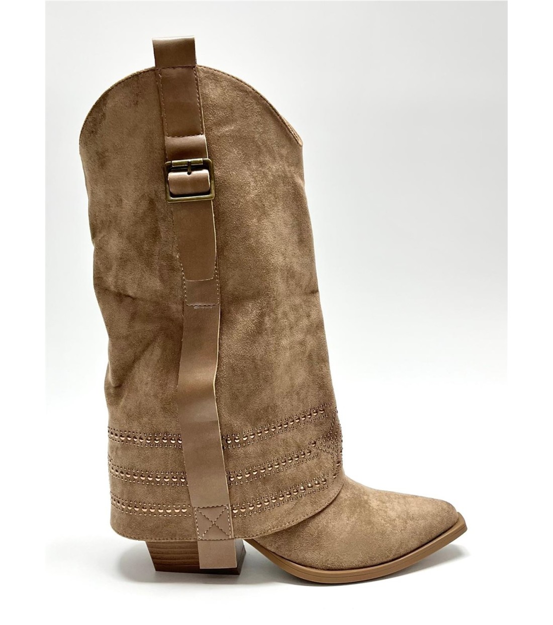 Bota de mujer de antelina con pernil. Cremallera lateral. Tacon 7cm. Caña 30cm