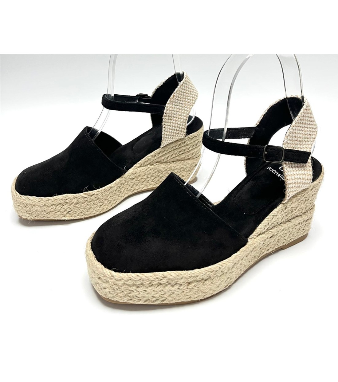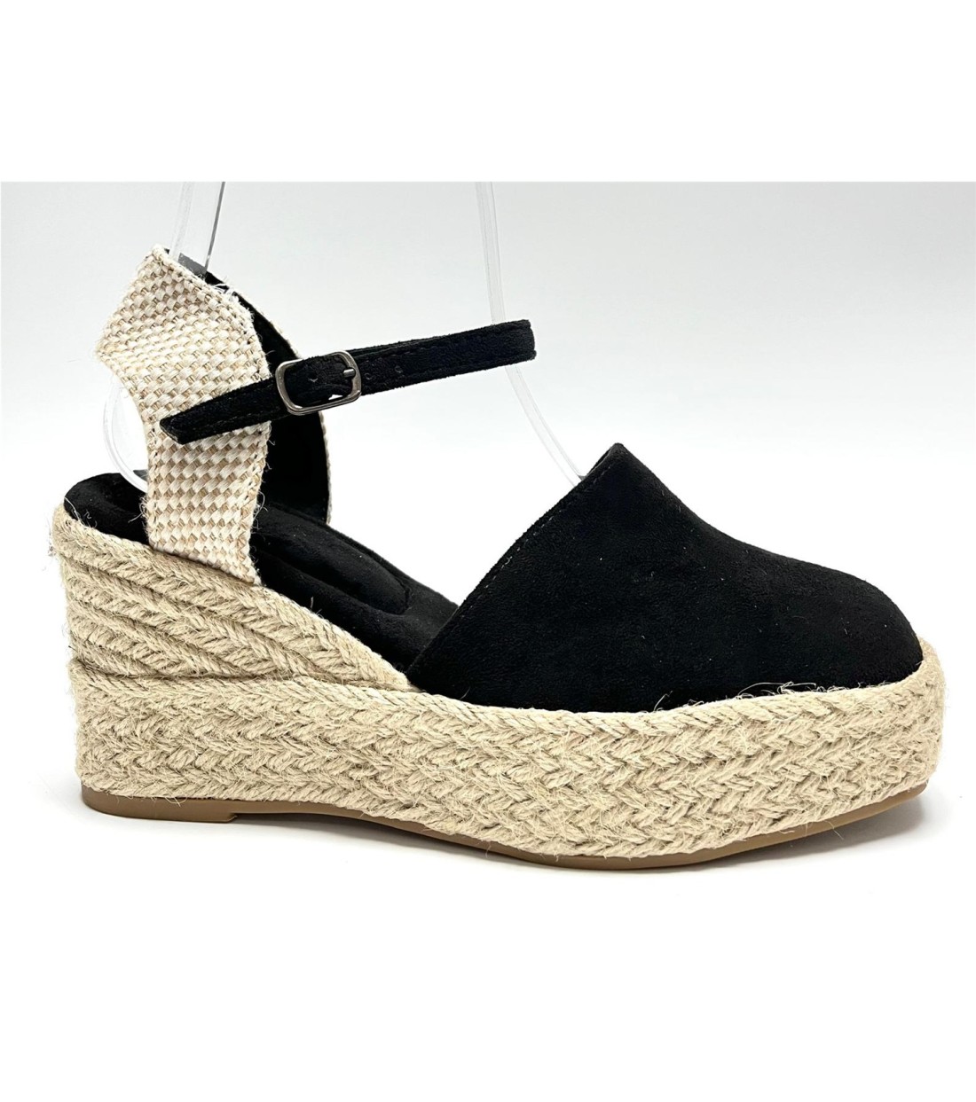 Cuña de mujer de esparto y antelinacon correa a tobillo. Cuña 8cm. Plataforma 4cm