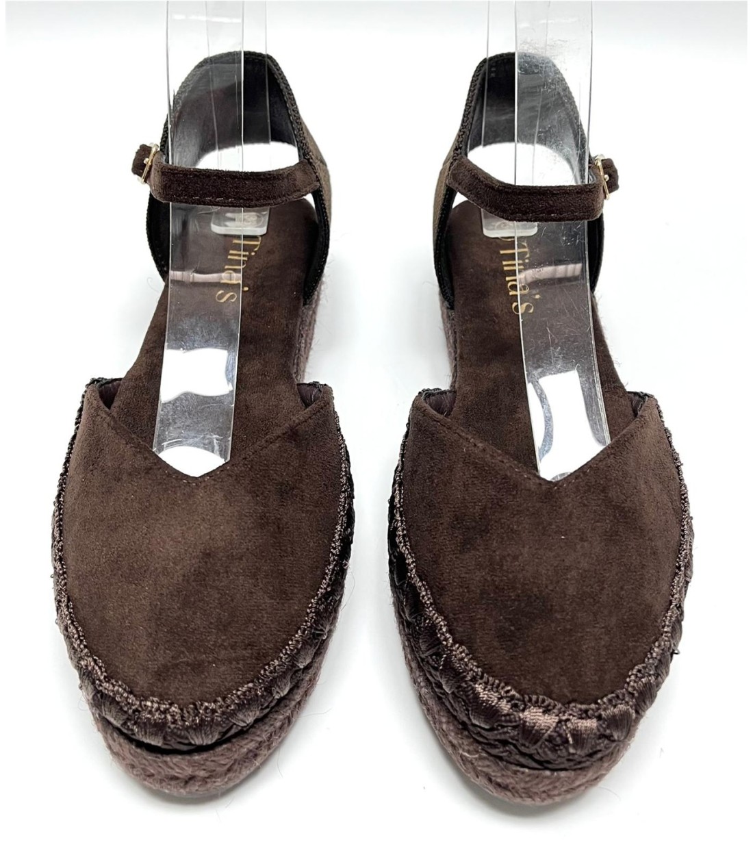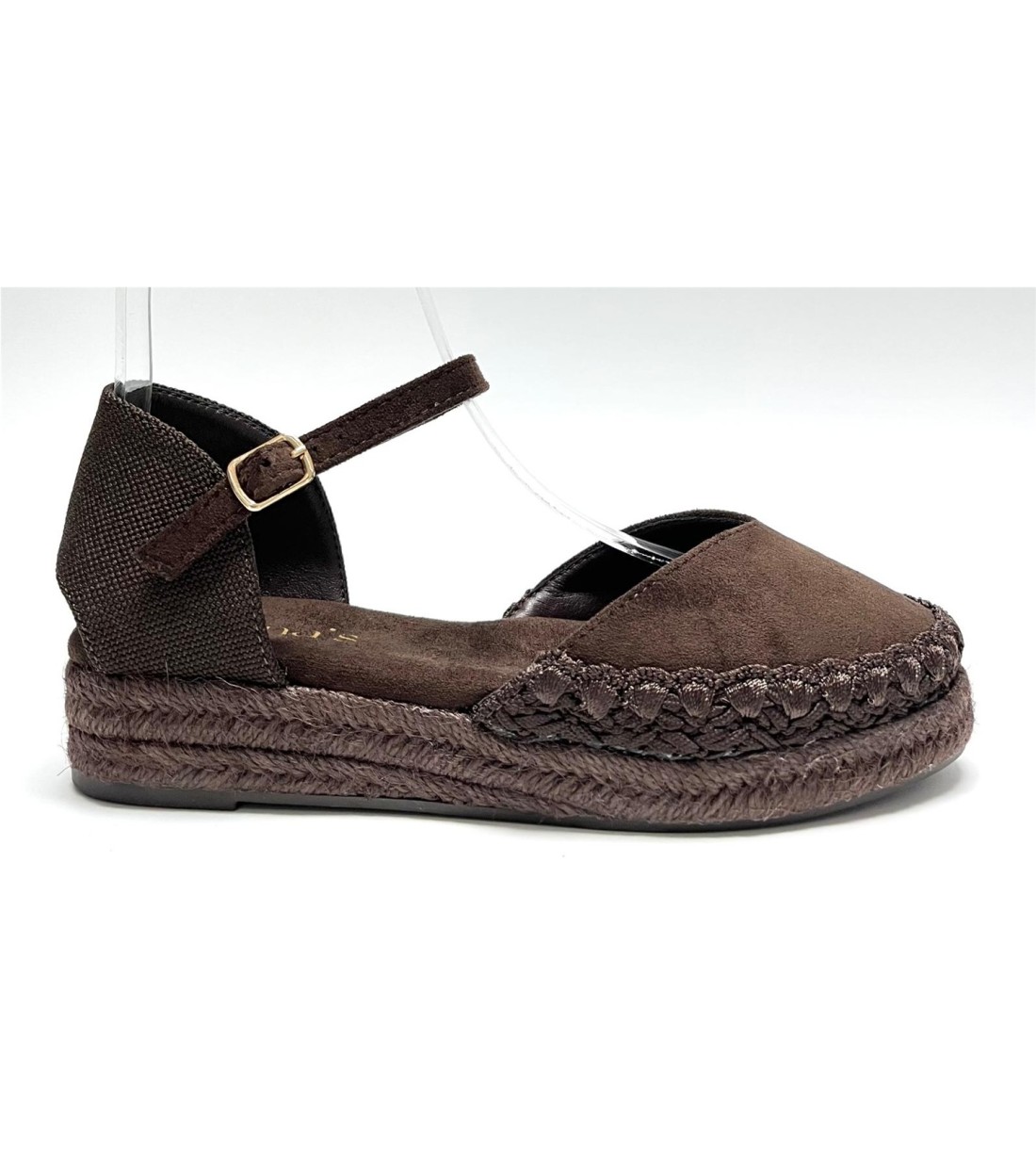 Alpargata de mujer de esparto y antelina con correa al tobillo. Plataforma 3cm