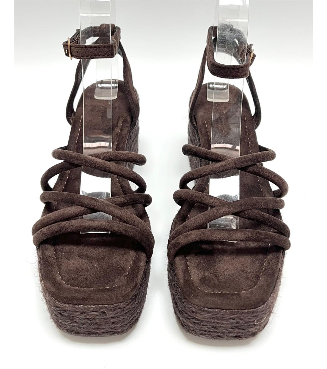 Sandalia de esparto de mujer de antelina (dorada polipiel). Cuña 8cm. Plataforma 4cm
