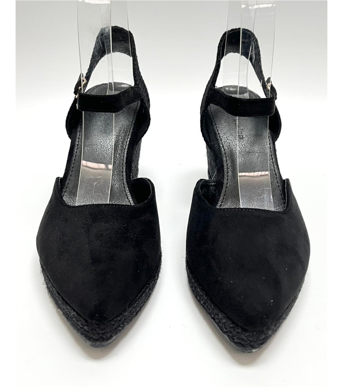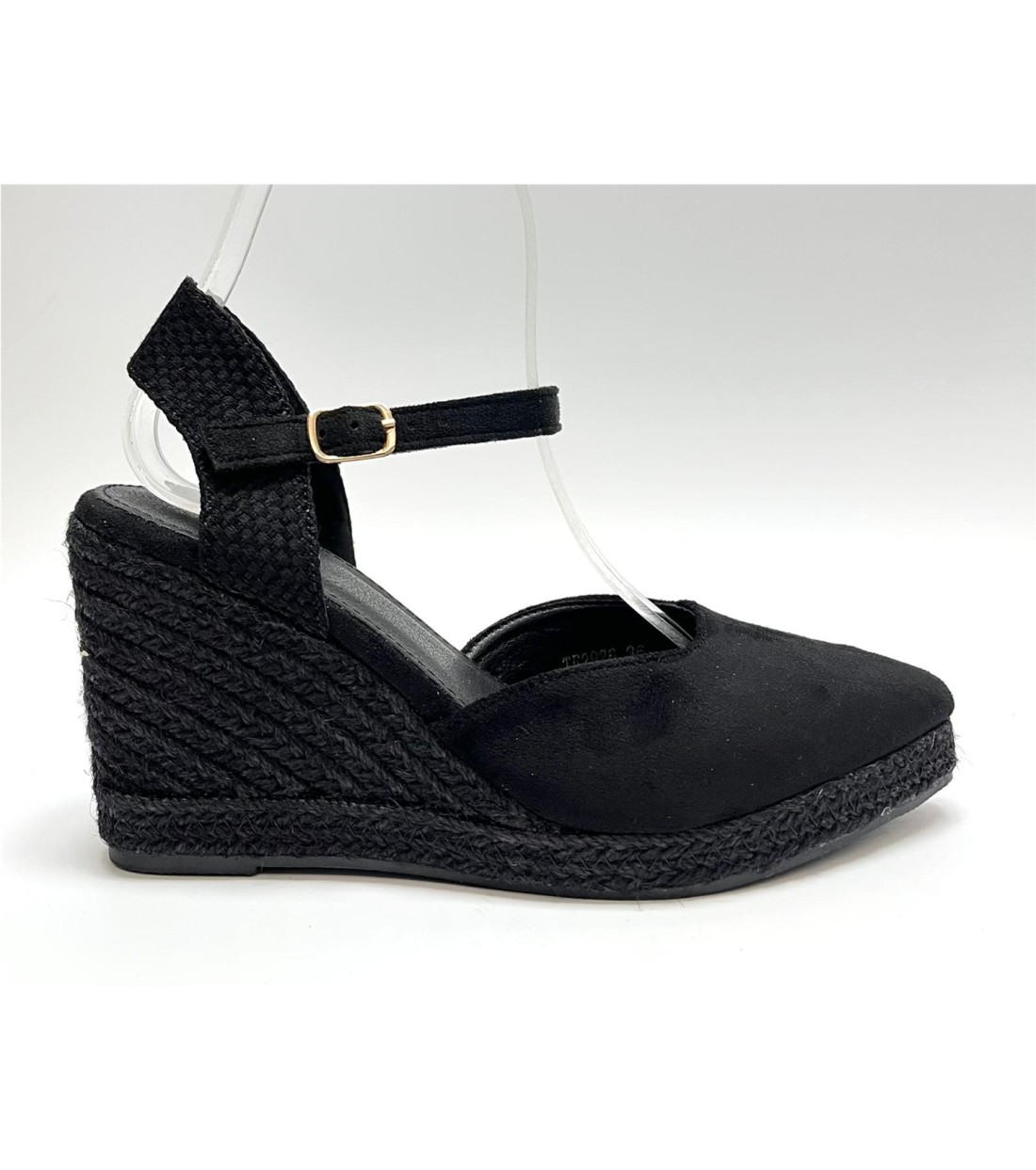 Cuña de mujer de esparto y antelina (dorada polipiel). Cuña 9,5cm. Plataforma 1,5cm