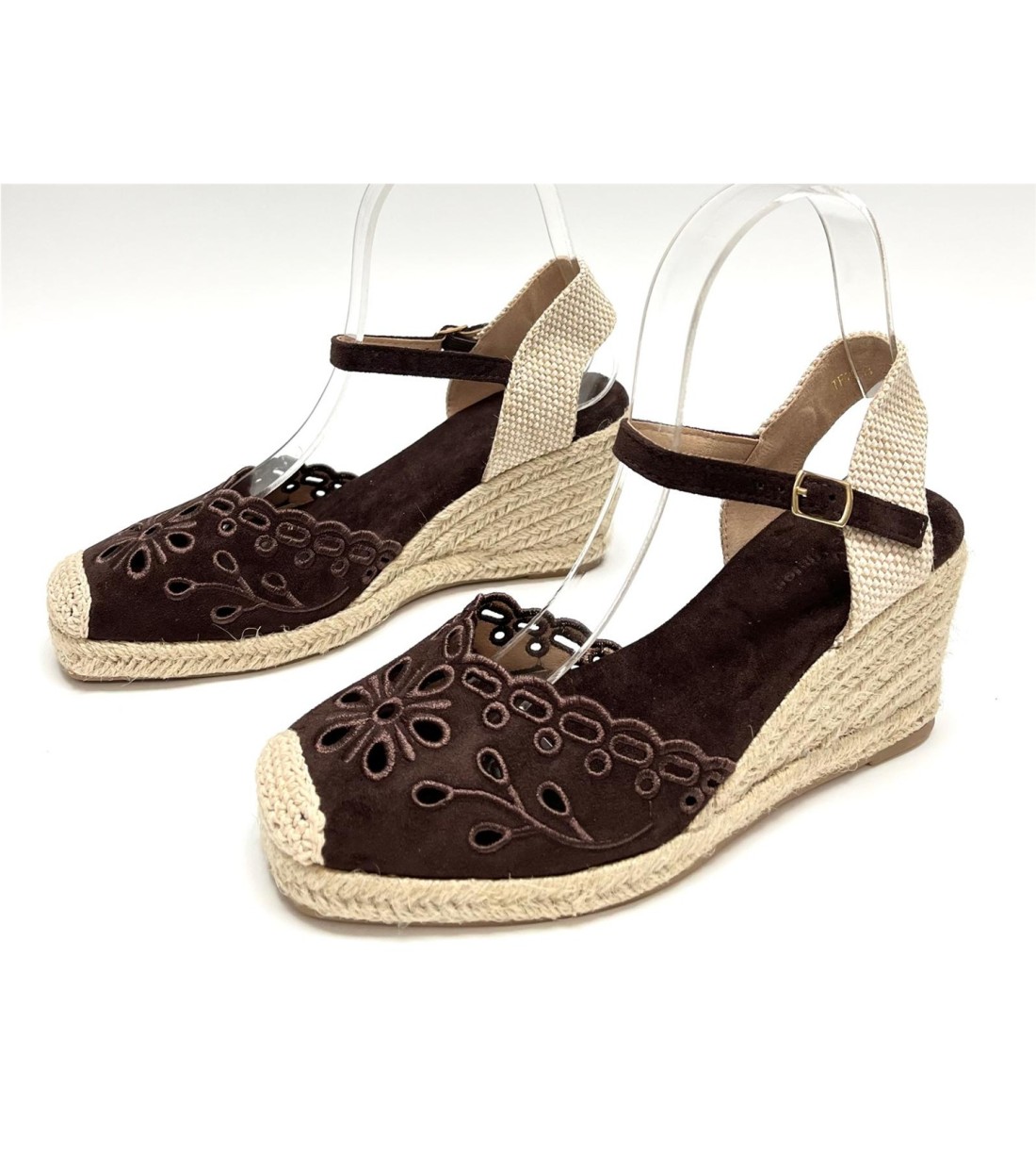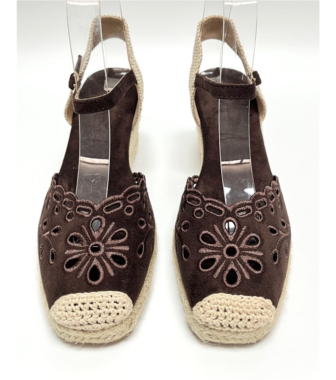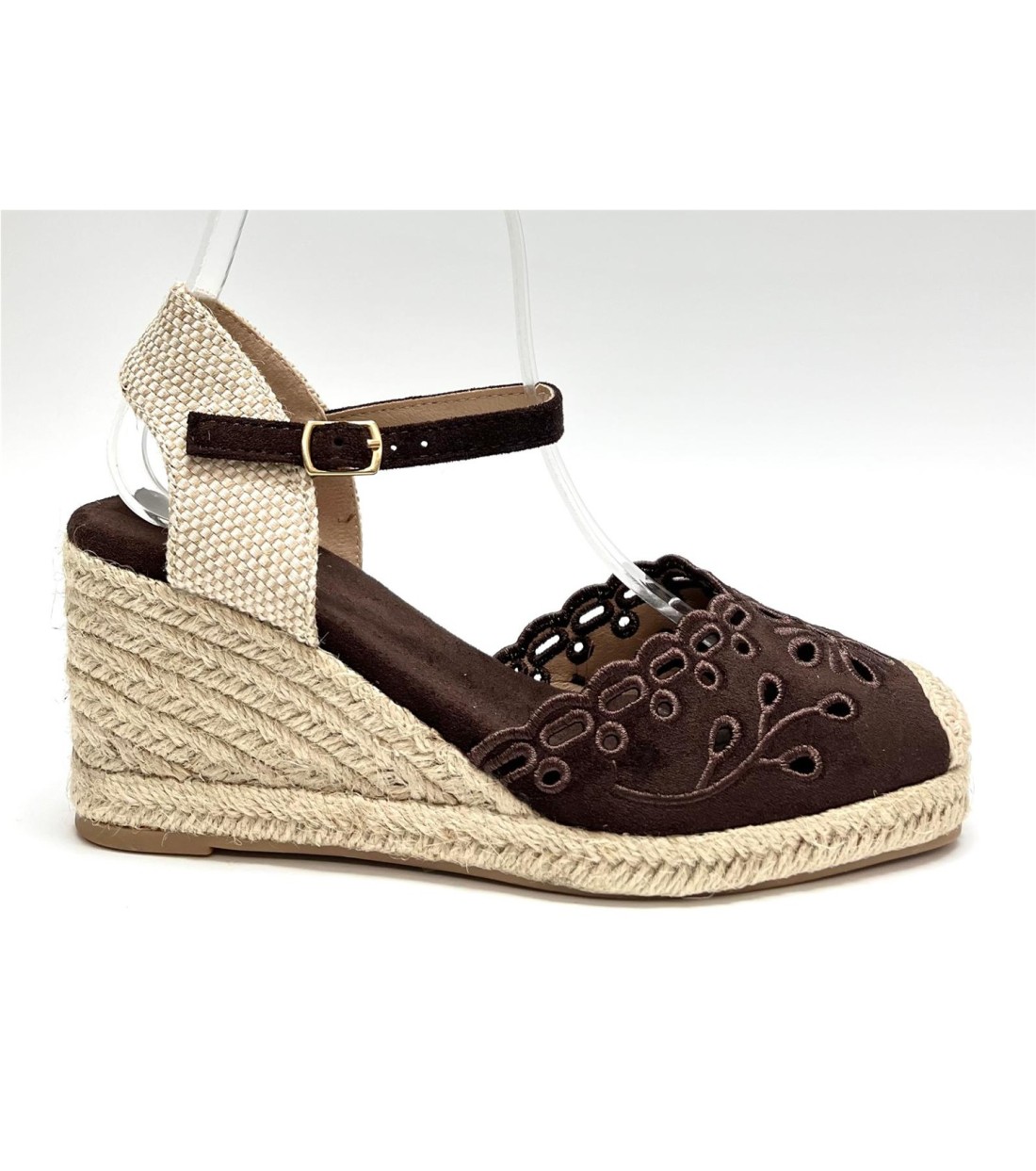 Cuña de mujer de antelina (dorada polipiel) bordada. Cuña 7,5cm. Plataforma 1cm