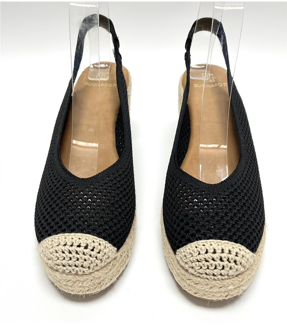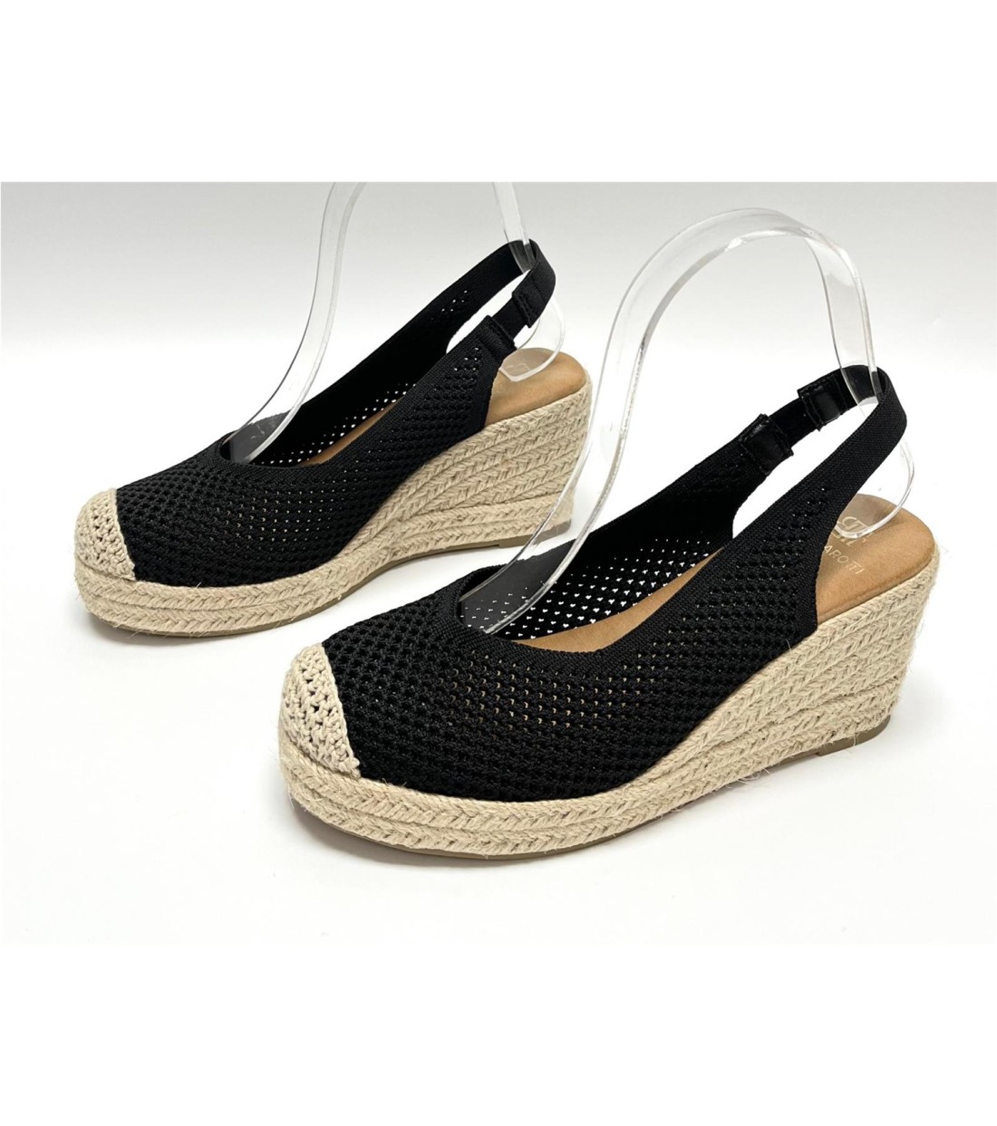 Cuña de mujer de tejido calado y esparto. Cuña 8cm. Plataforma 2cm