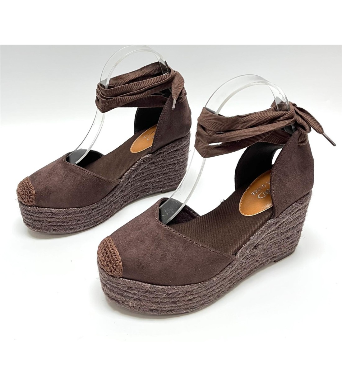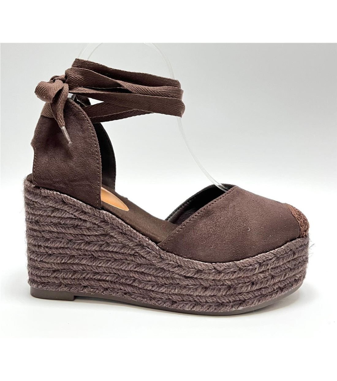 Cuña de mujer de antelina con cuerda al tobillo. Cuña 9cm. Plataforma 3.5cm