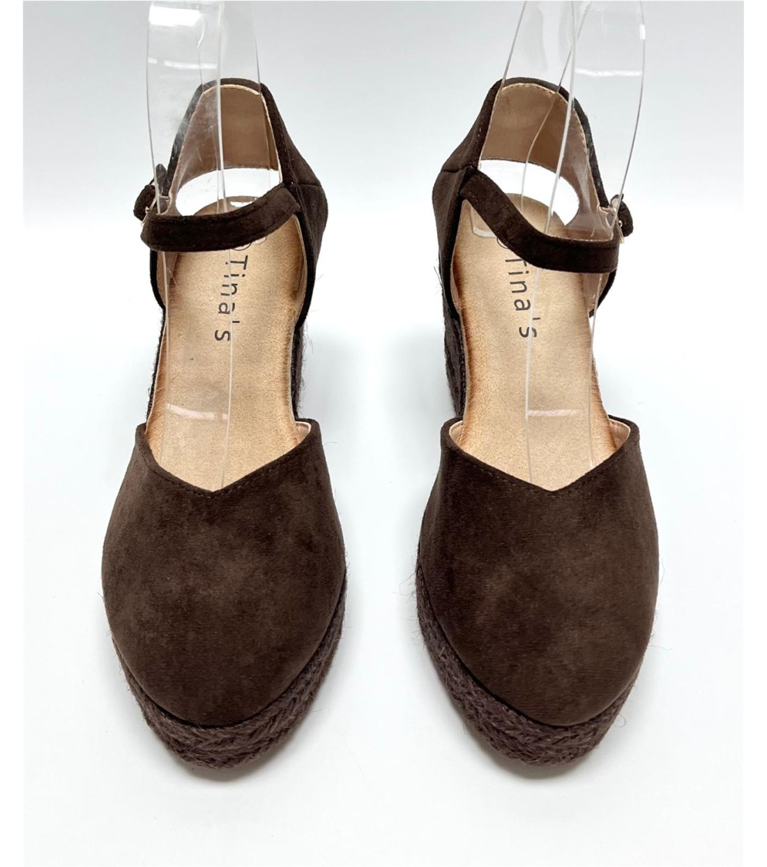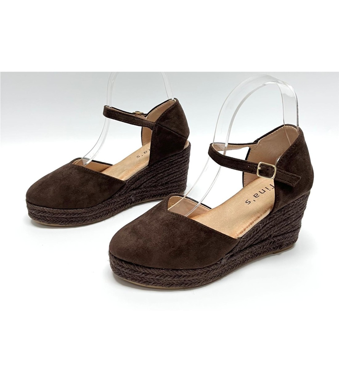 Cuña de mujer de antelina con correa al tobillo. Cuña 8,5cm. Plataforma 2,5cm