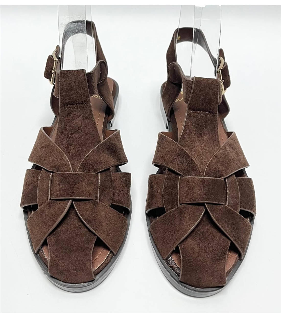 Sandalia de mujer tipo cangrejera de antelina con correa al tobillo.
