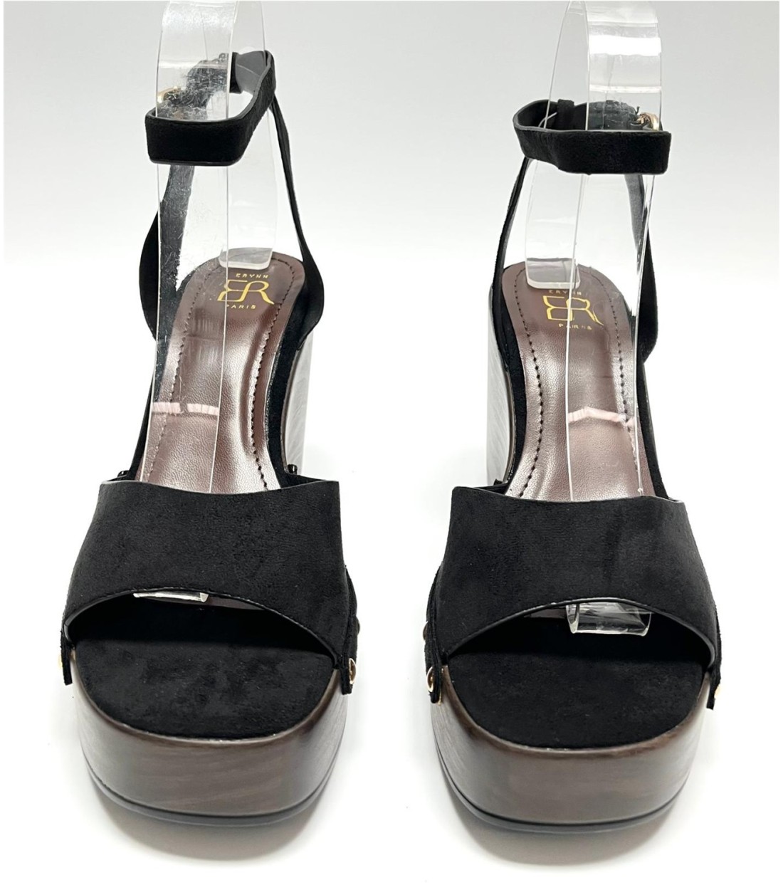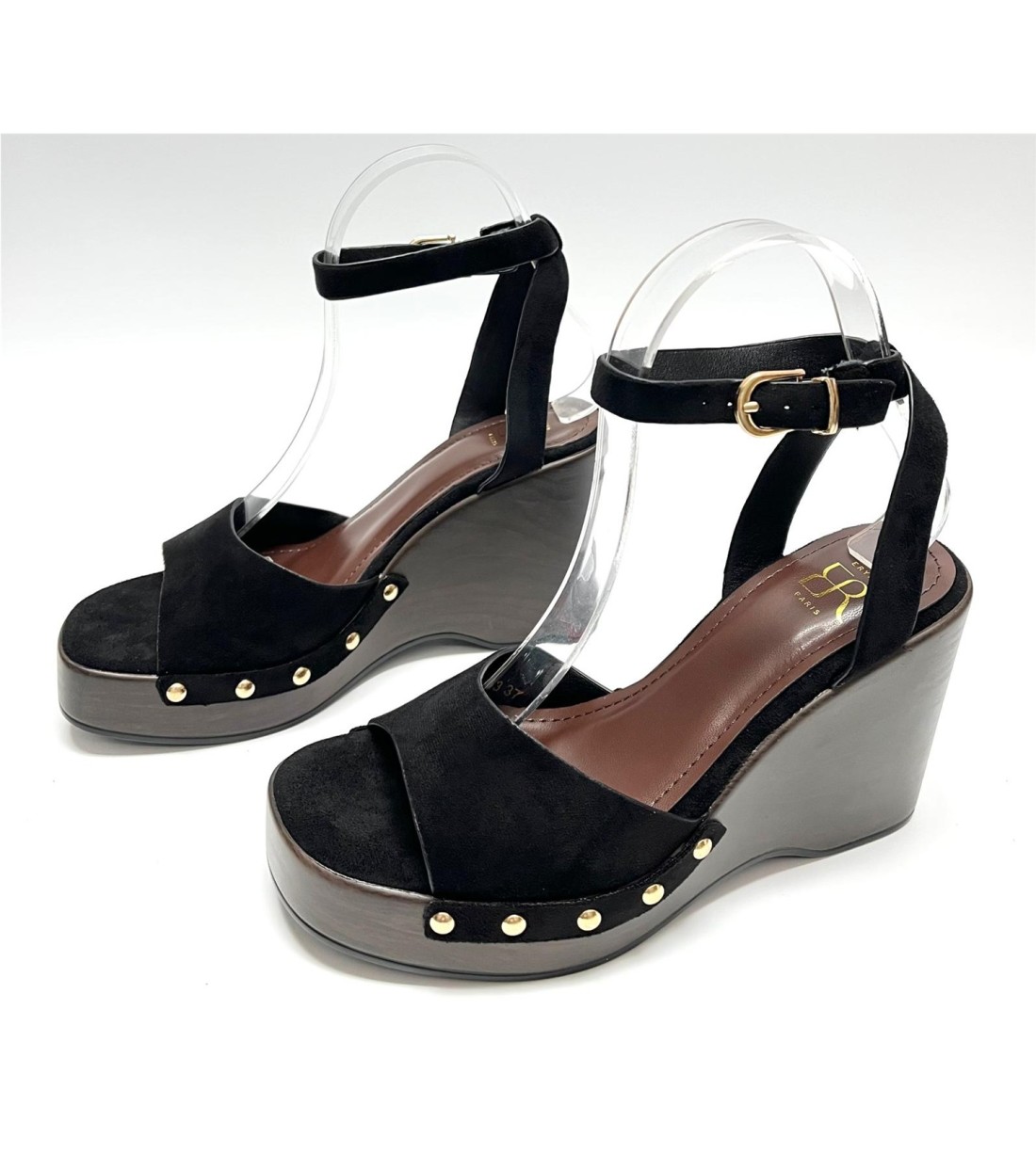 Sandalia de mujer de antelina con cuña de imitacion madera. Cuña 10cm. Plataforma 3cm