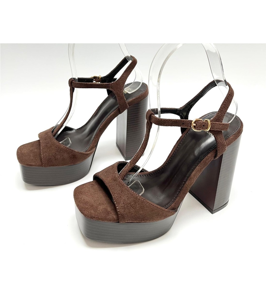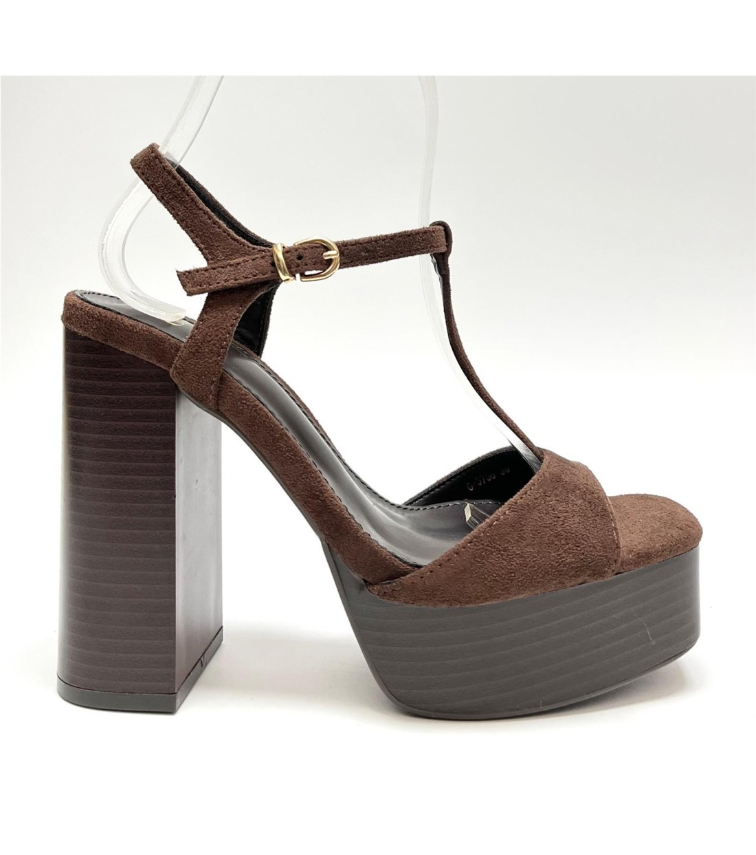 Sandalia de mujer de antelina e imitacion a madera. Tacon 12,5cm. Plataforma 4cm