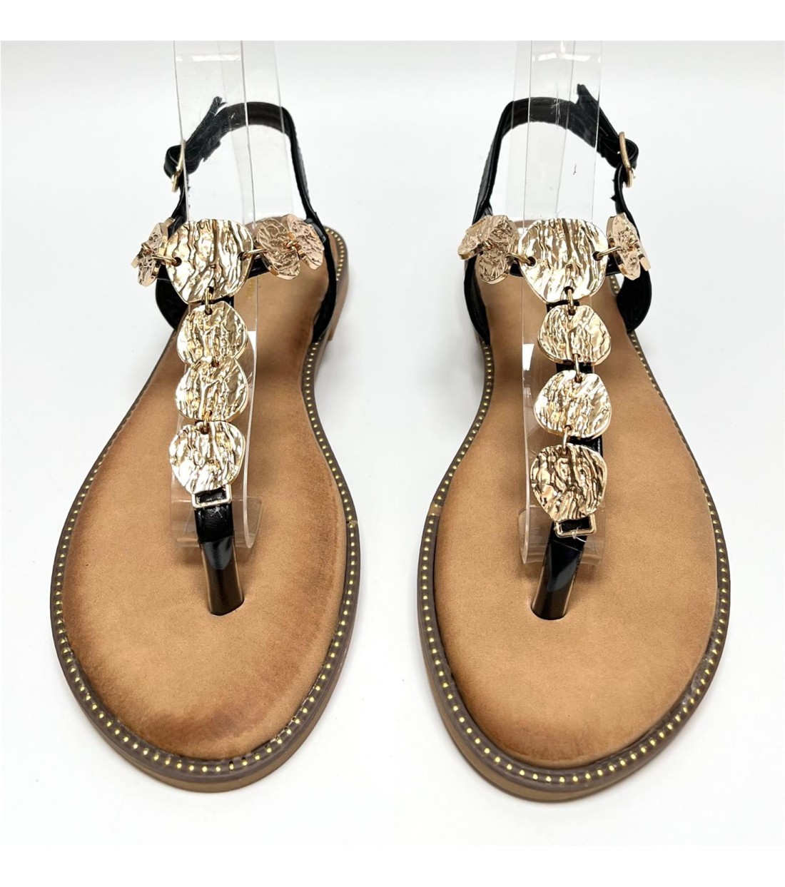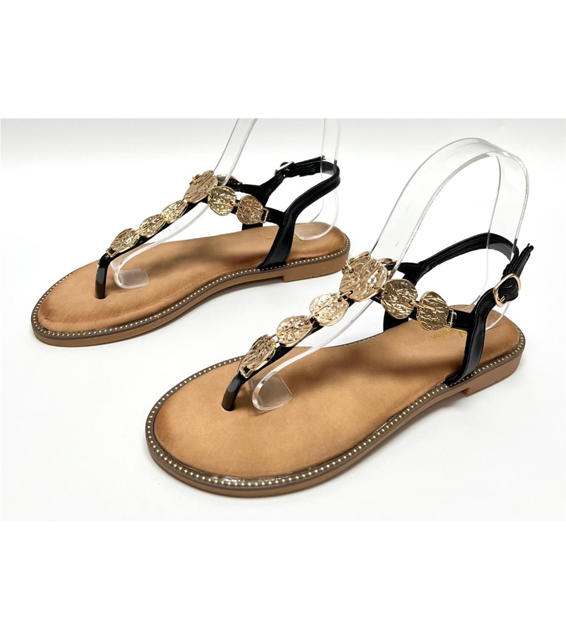Sandalia de mujer de polipiel tipo esclava con adornos dorados