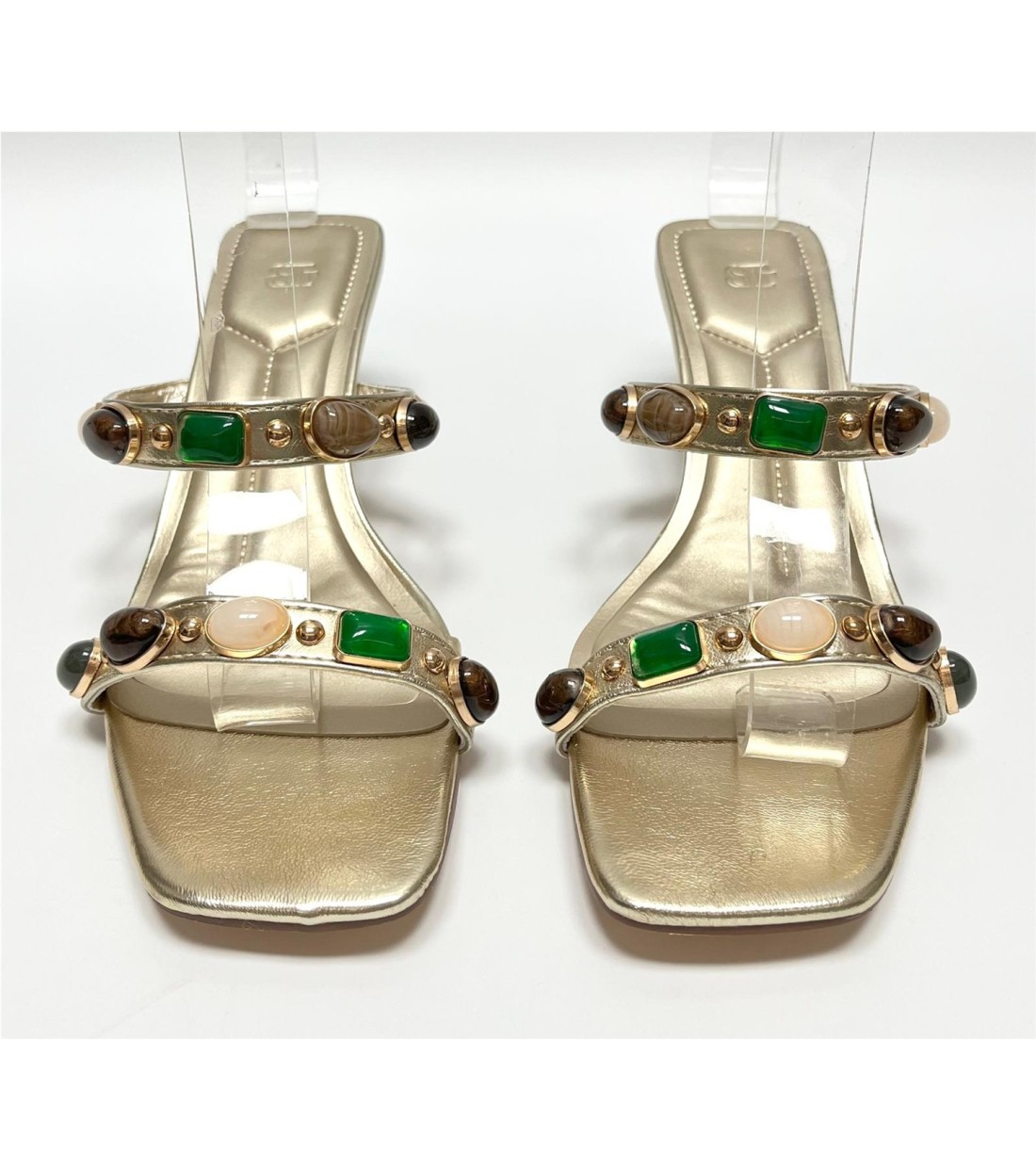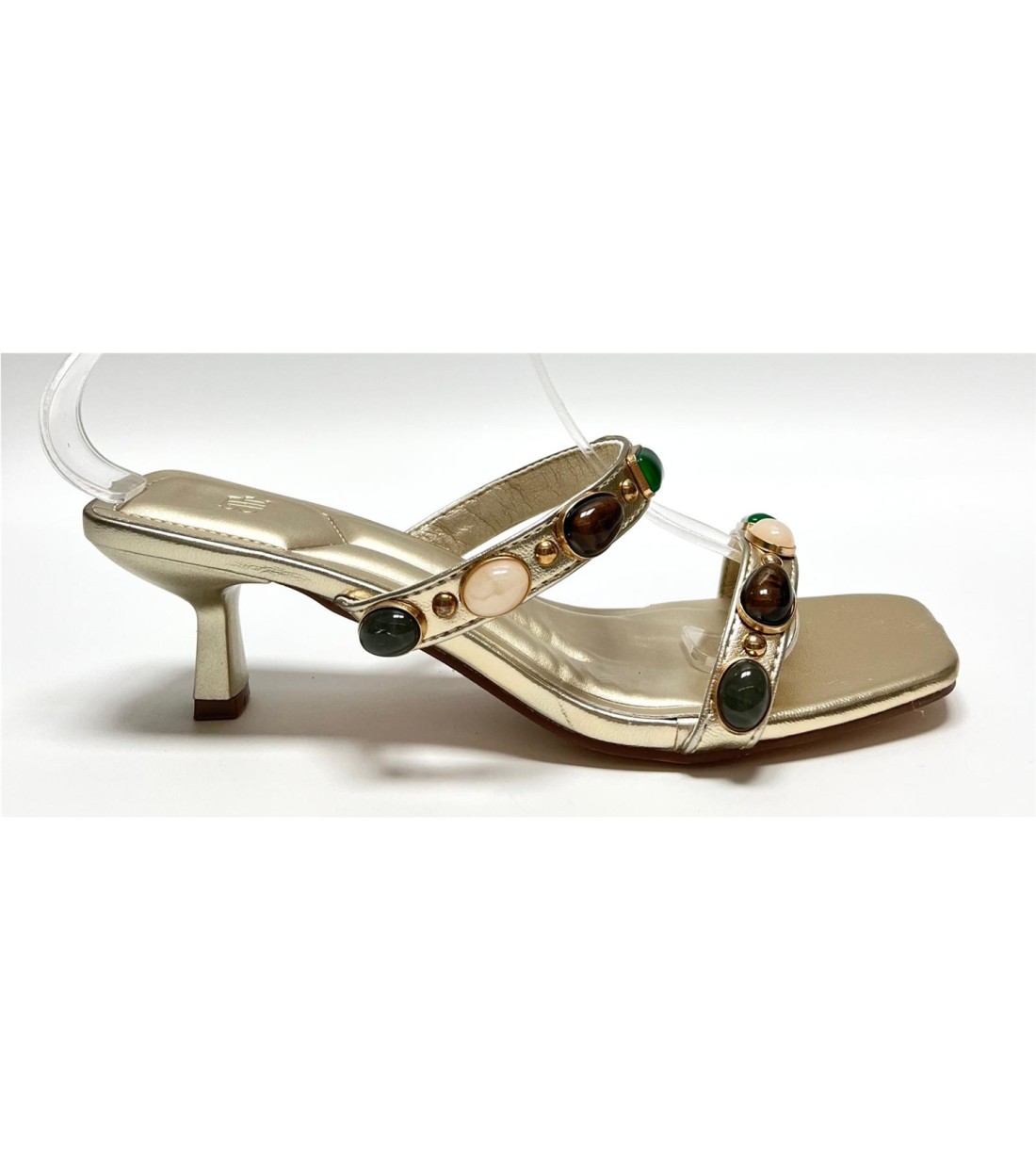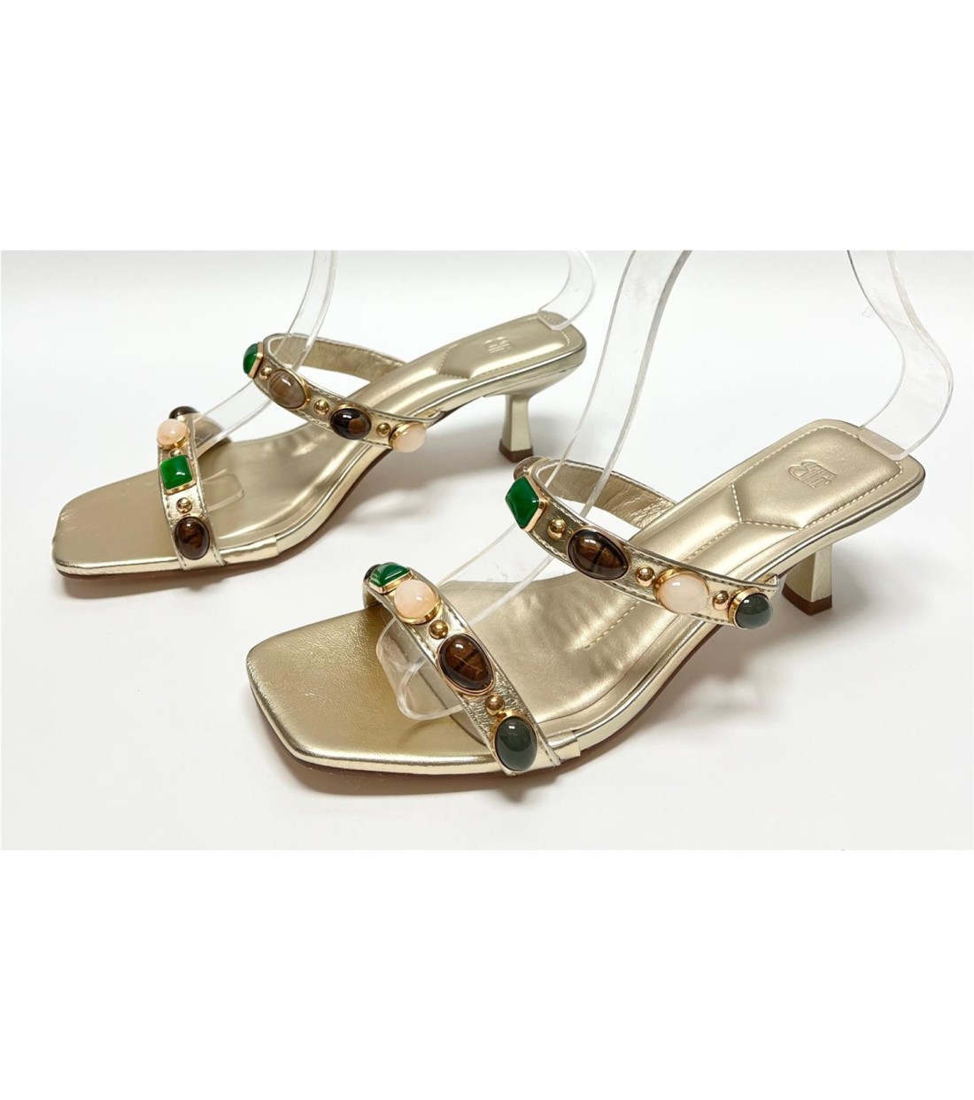 Sandalia de mujer de polipiel con adorno de piedras. Tacon 6,5cm