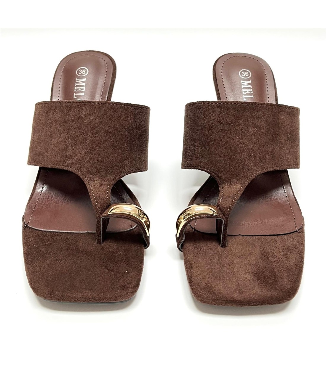 Sandalia de mujer de antelina (dorada polipiel). Tacon 8,5cm