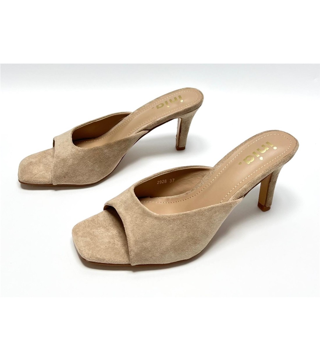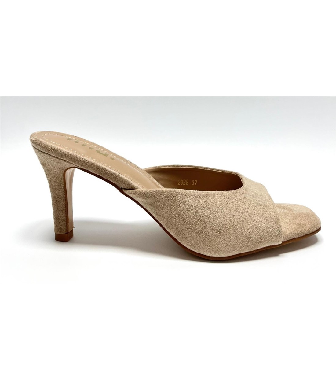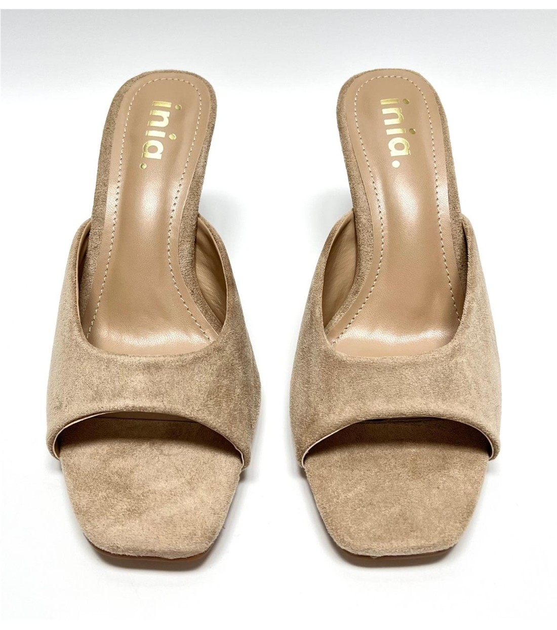 Sandalia de mujer de antelina de pala. Tacon 8,5cm