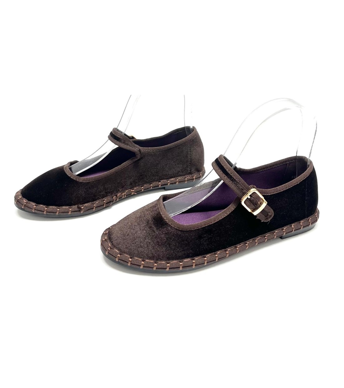 Manoletina de mujer de tipo terciopelo con hebilla dorada