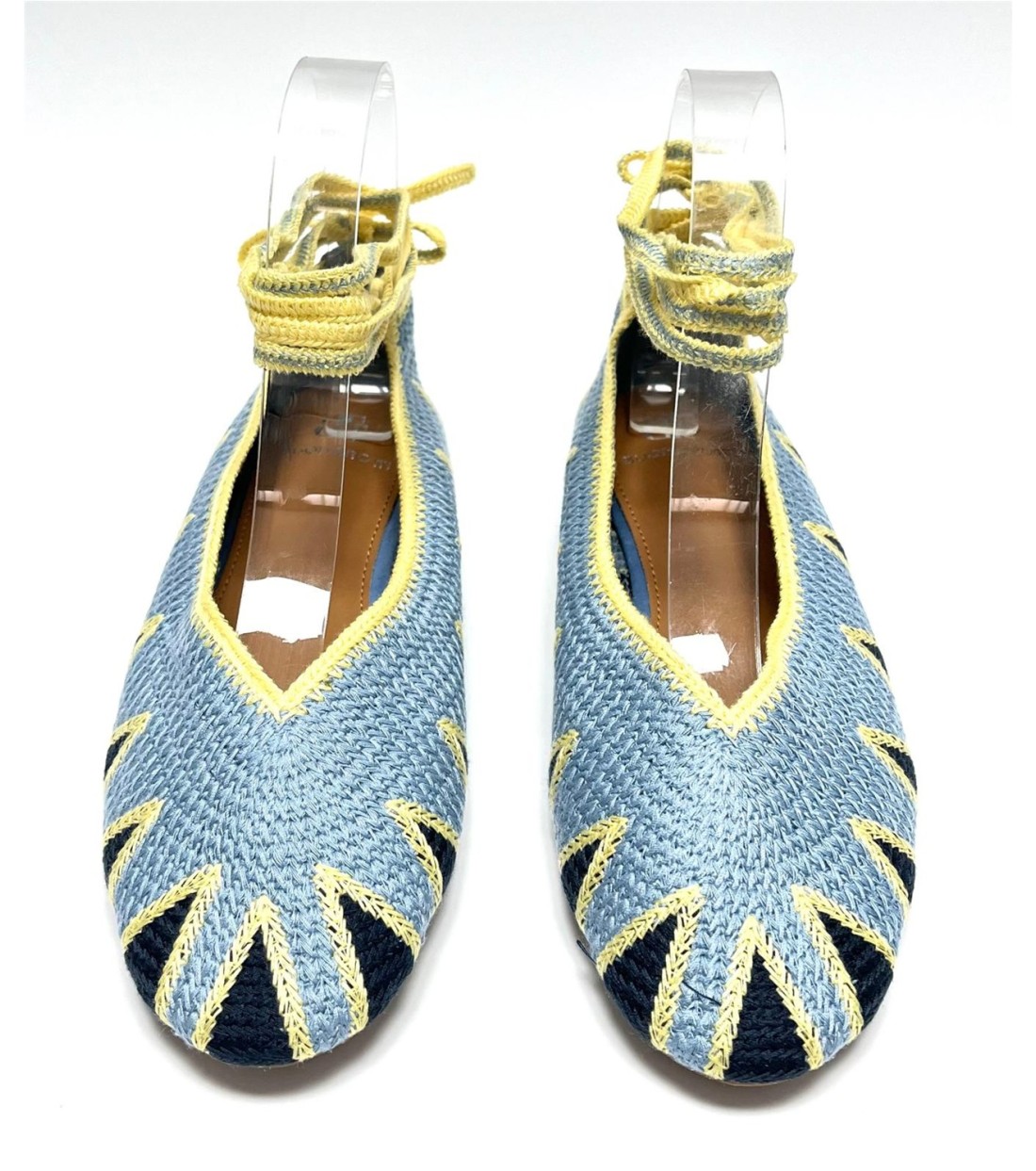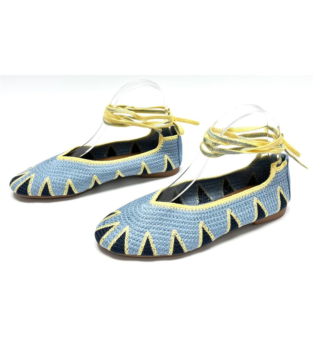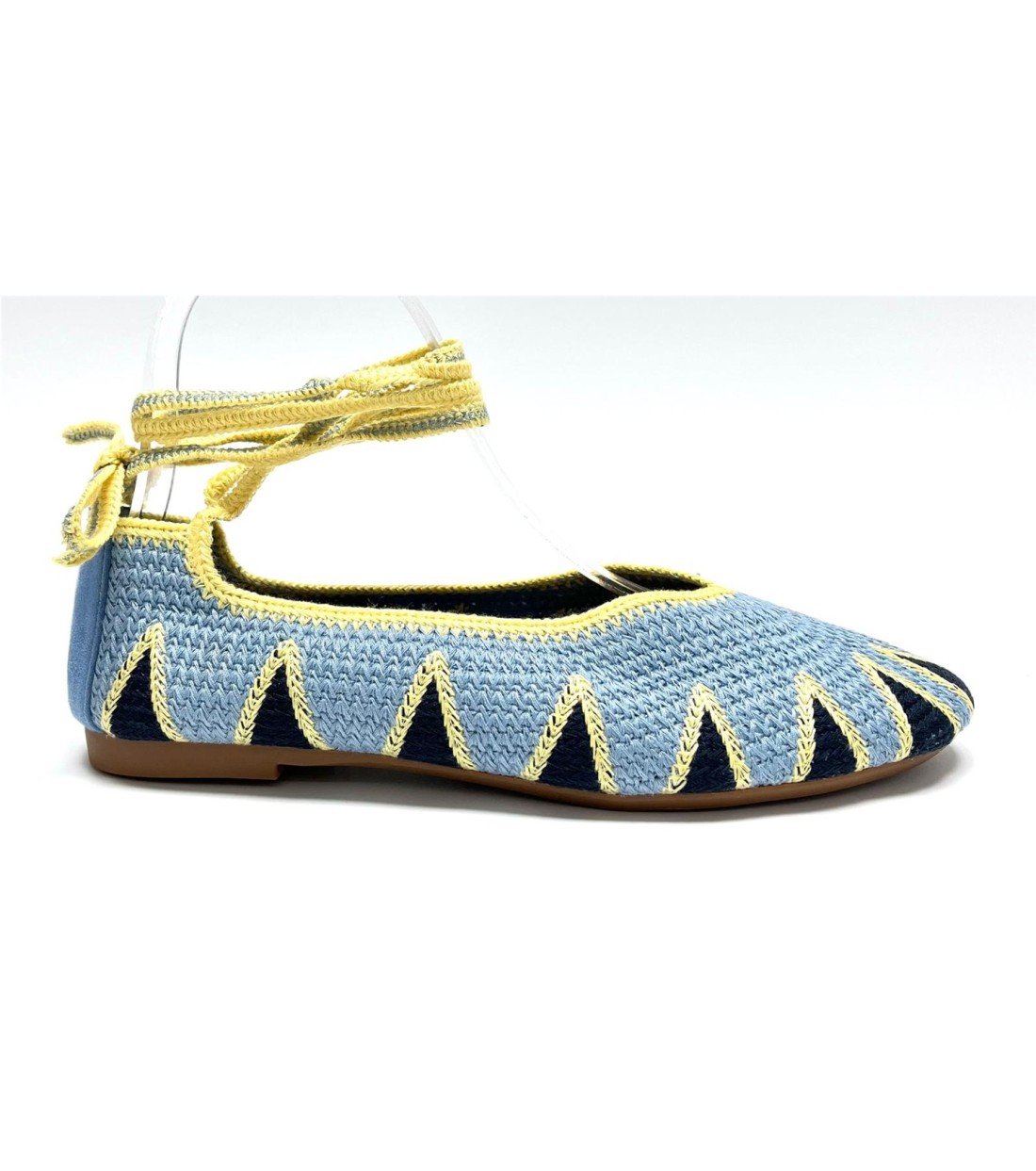 Manoletina de mujer de croche con cuerda al tobillo. Planta acolchada