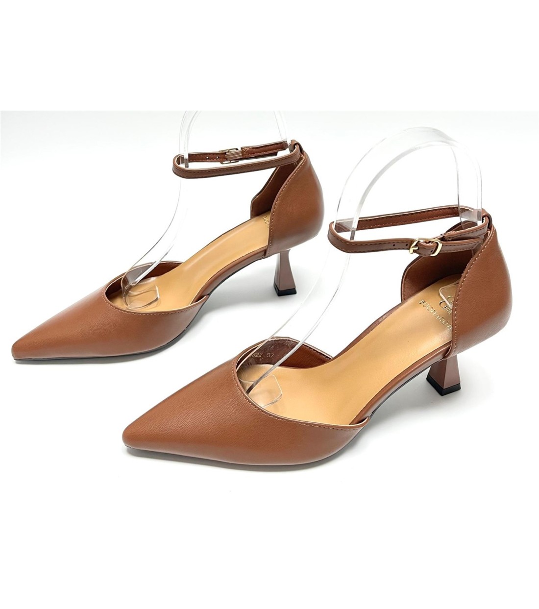 Zapato de mujer de salon de polipiel con correa a tobillo. Tacon 7cm