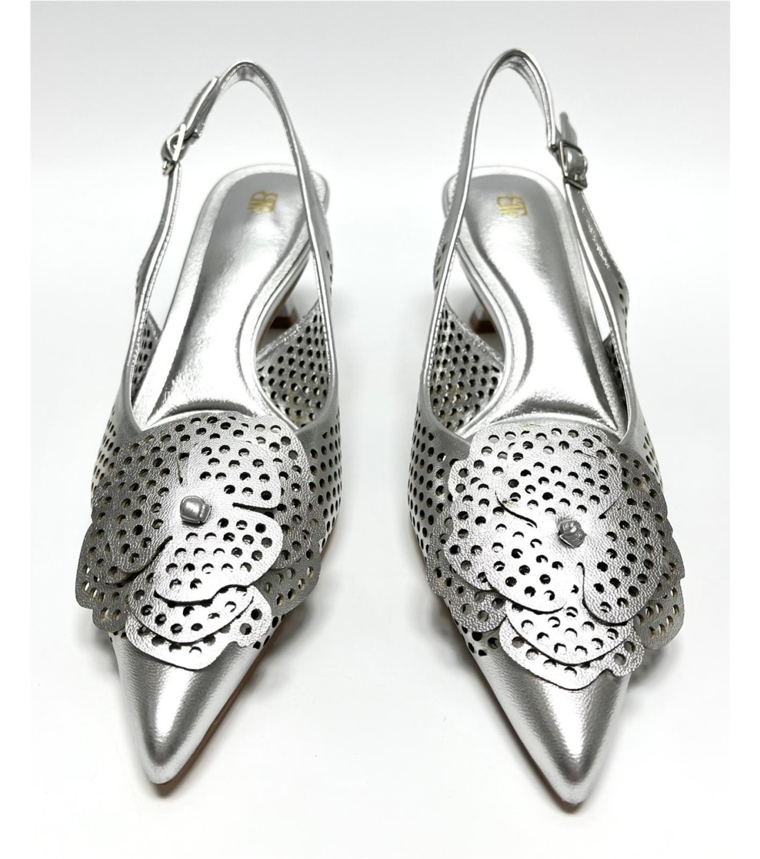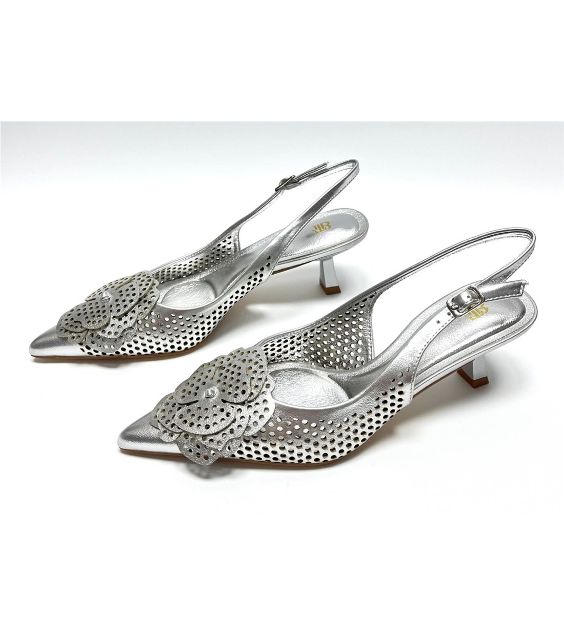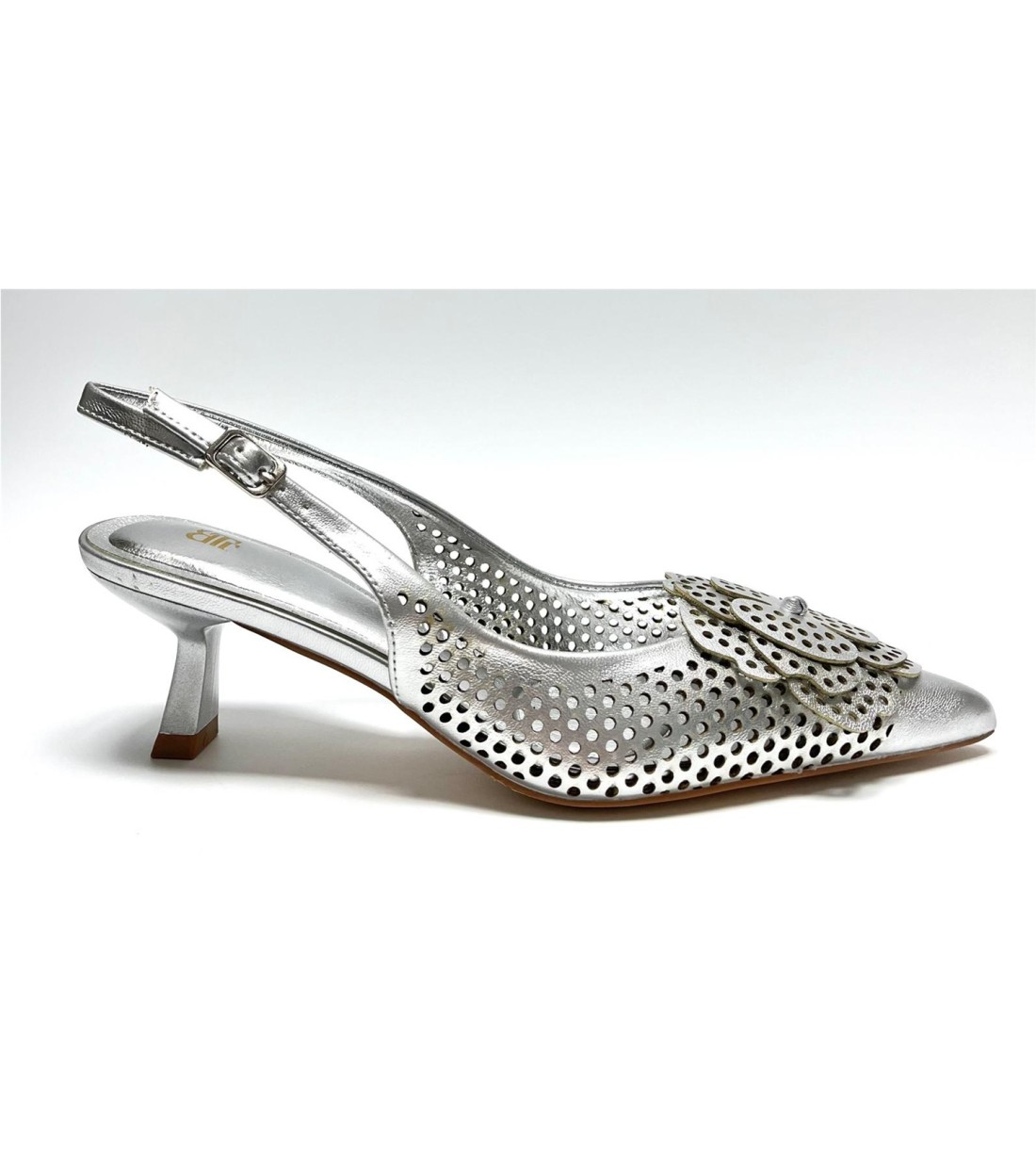 Salon de mujer de polipiel calado con decoracion de flor. Tacon 6,5cm
