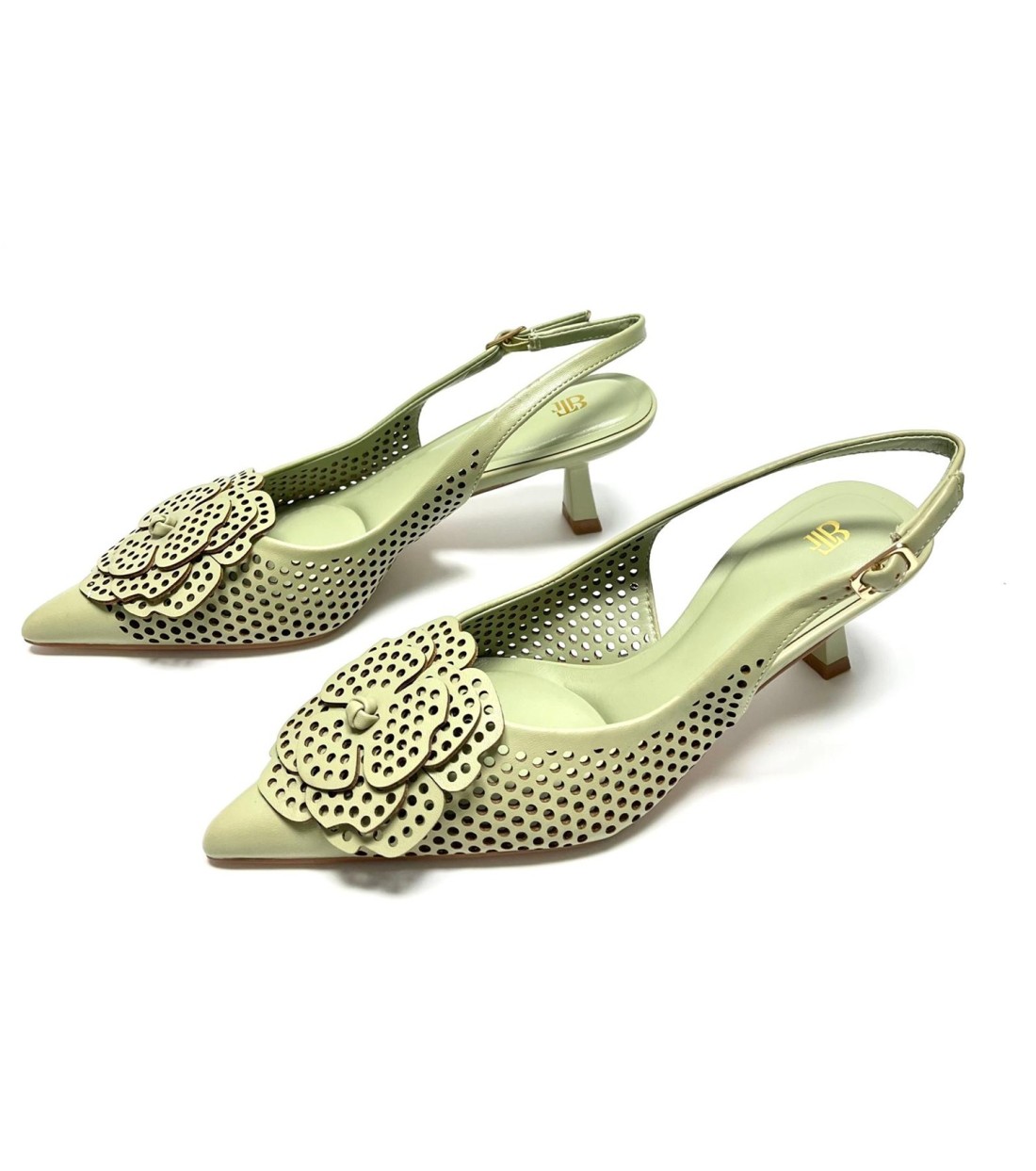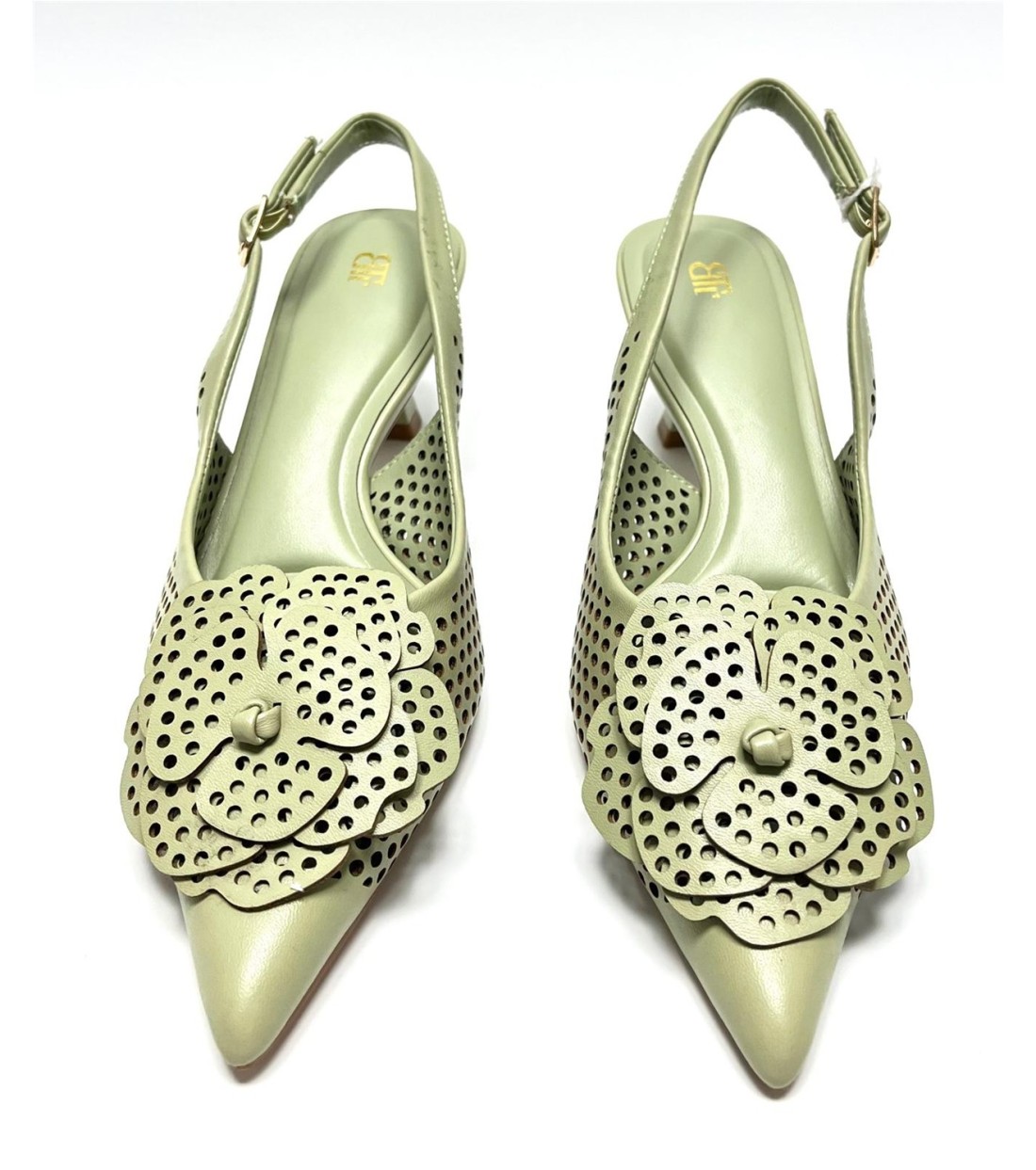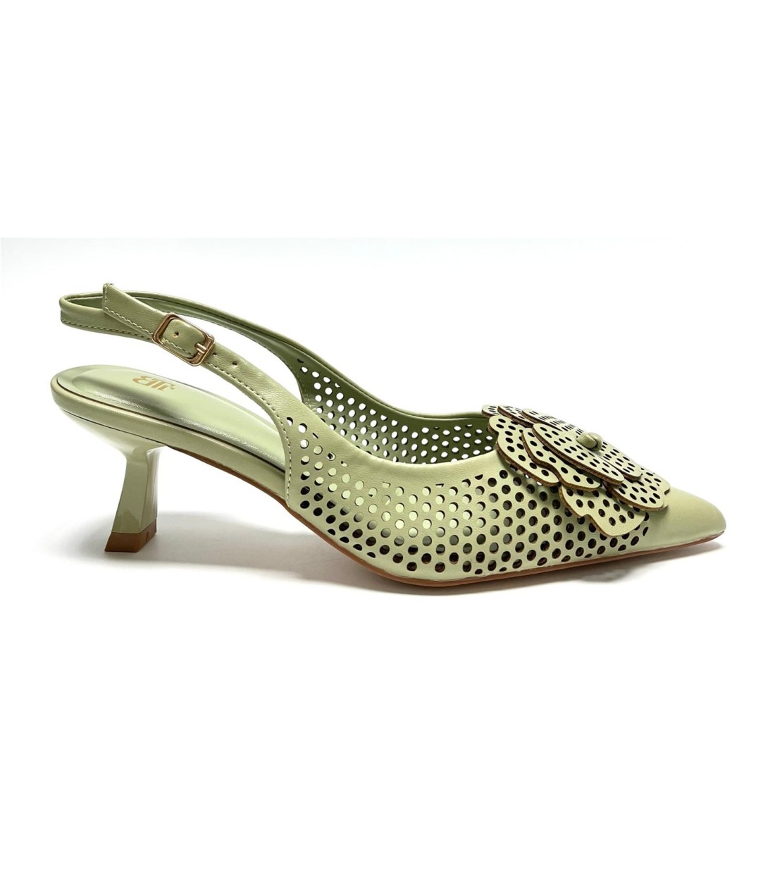 Salon de mujer de polipiel calado con decoracion de flor. Tacon 6,5cm