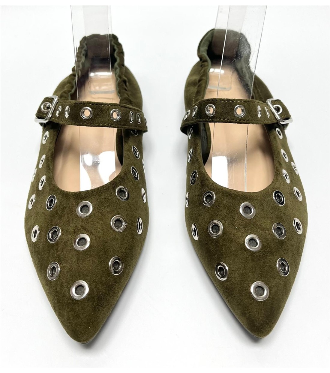 Zapato de mujer de antelina con remaches plateados