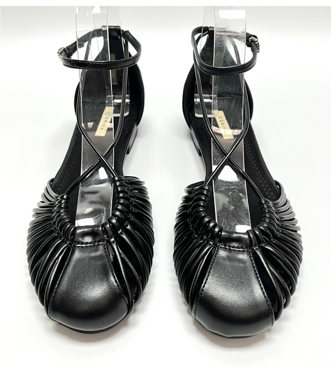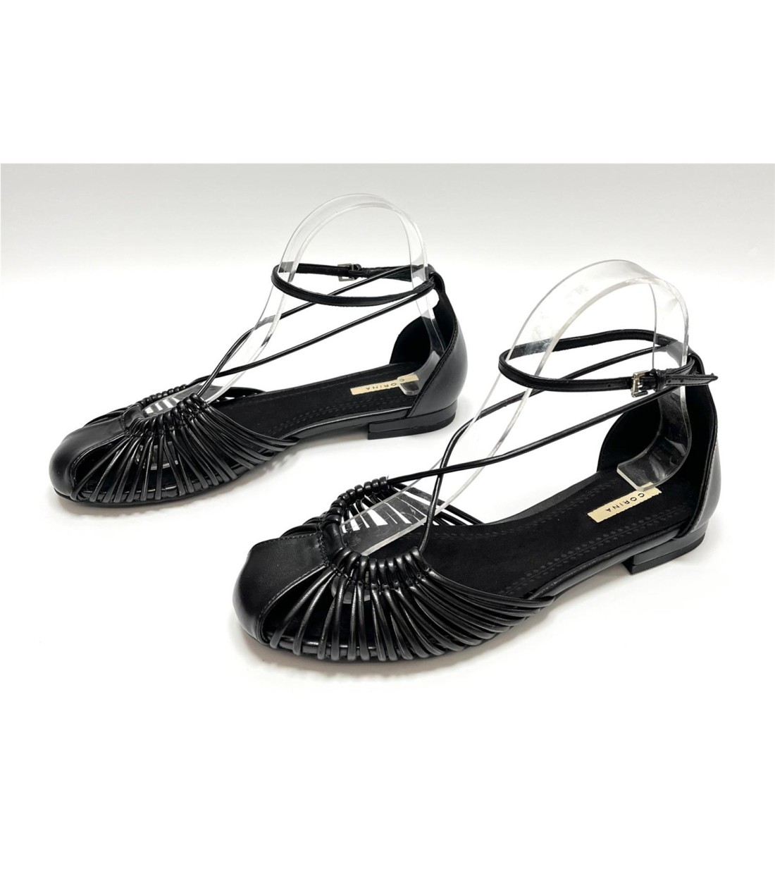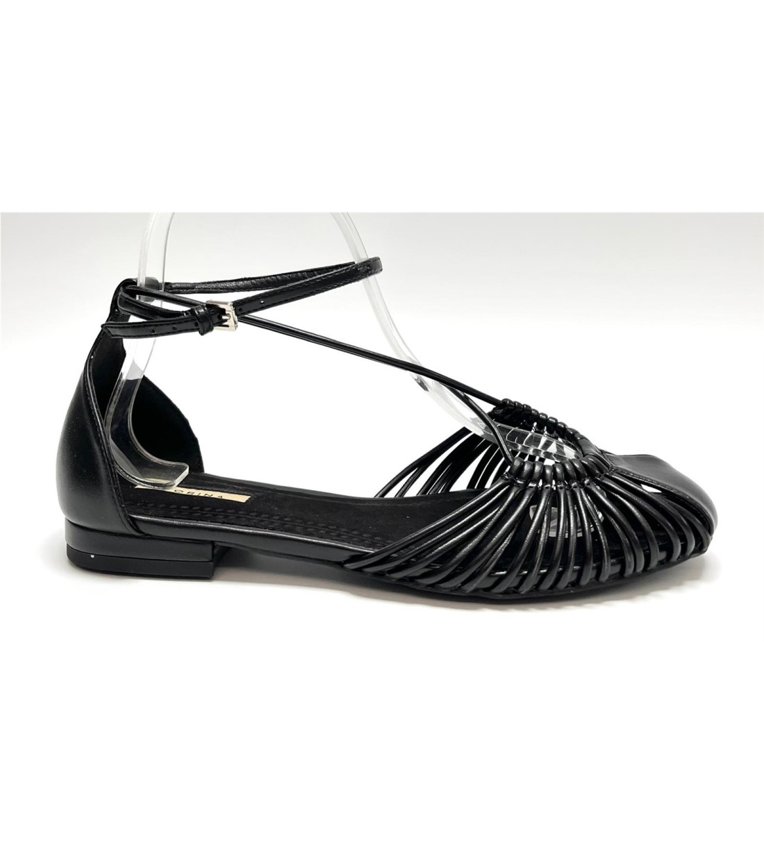 Manoletina de mujer de polipiel cogida al tobillo