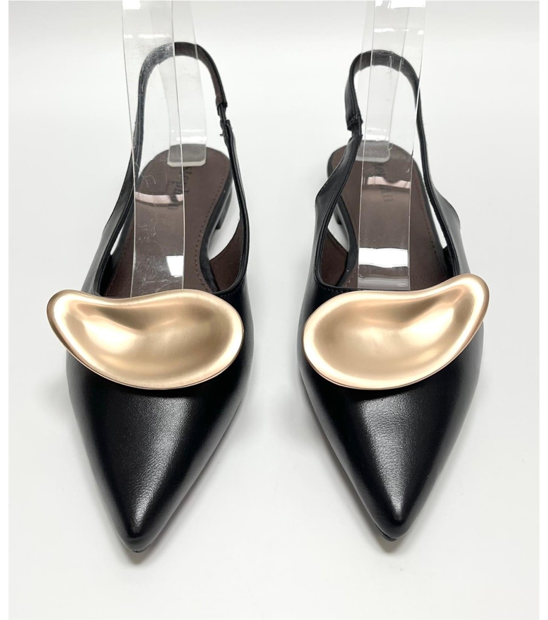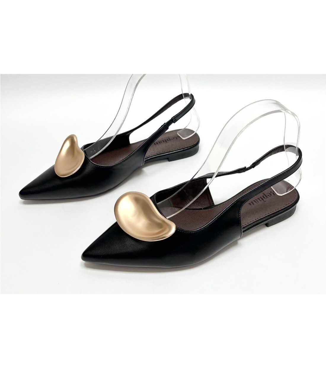 Zapato de mujer de polipiel con adorno dorado